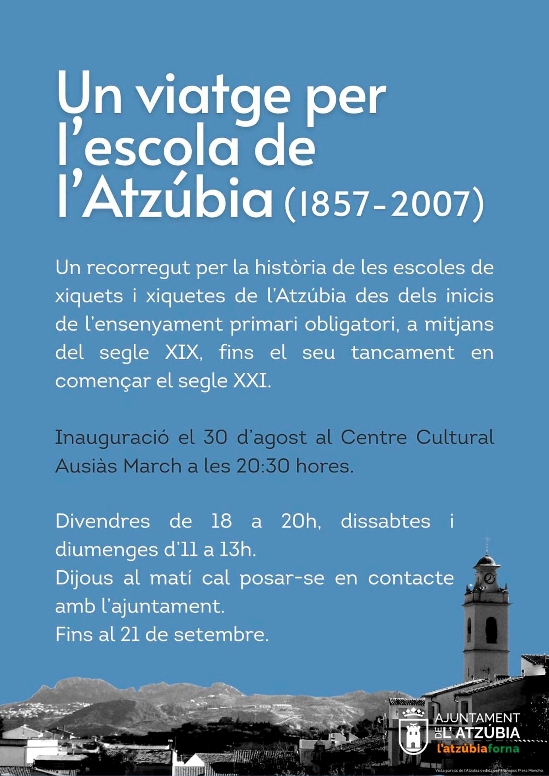 02 September 2025 - 12: 31 früher2 der 2Siehe Originalartikel: L'Atzúbia lässt die Erinnerung an seine Schule mit einer Ausstellung wieder aufleben, die anderthalb Jahrhunderte Unterricht umfasst Ausstellung „Eine Reise durch die Atzúbia-Schule (1857-2007)“ Plakat zur Ausstellung „Eine Reise durch die Atzúbia-Schule (1857–2007)“